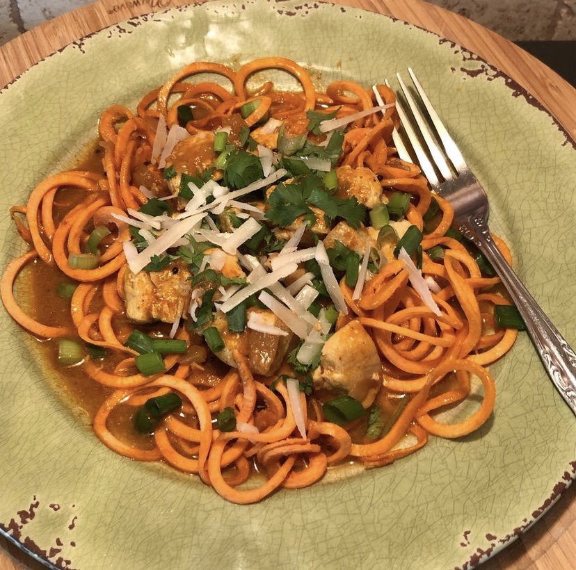 Goan Coconut Chicken Curry with Spiraled Sweet Potato