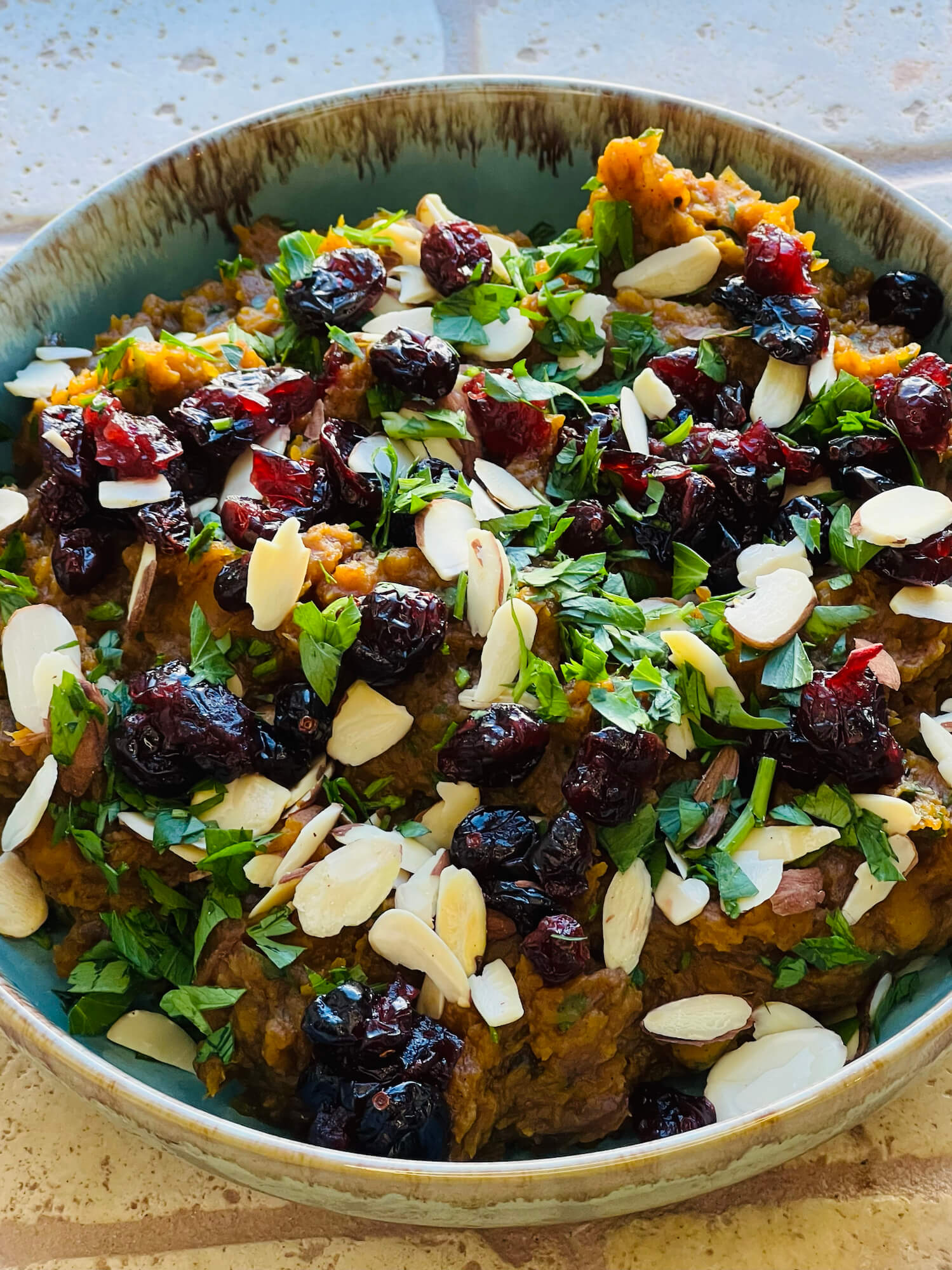 Butternut Squash With Cranberries Almonds And Caramelized Onions