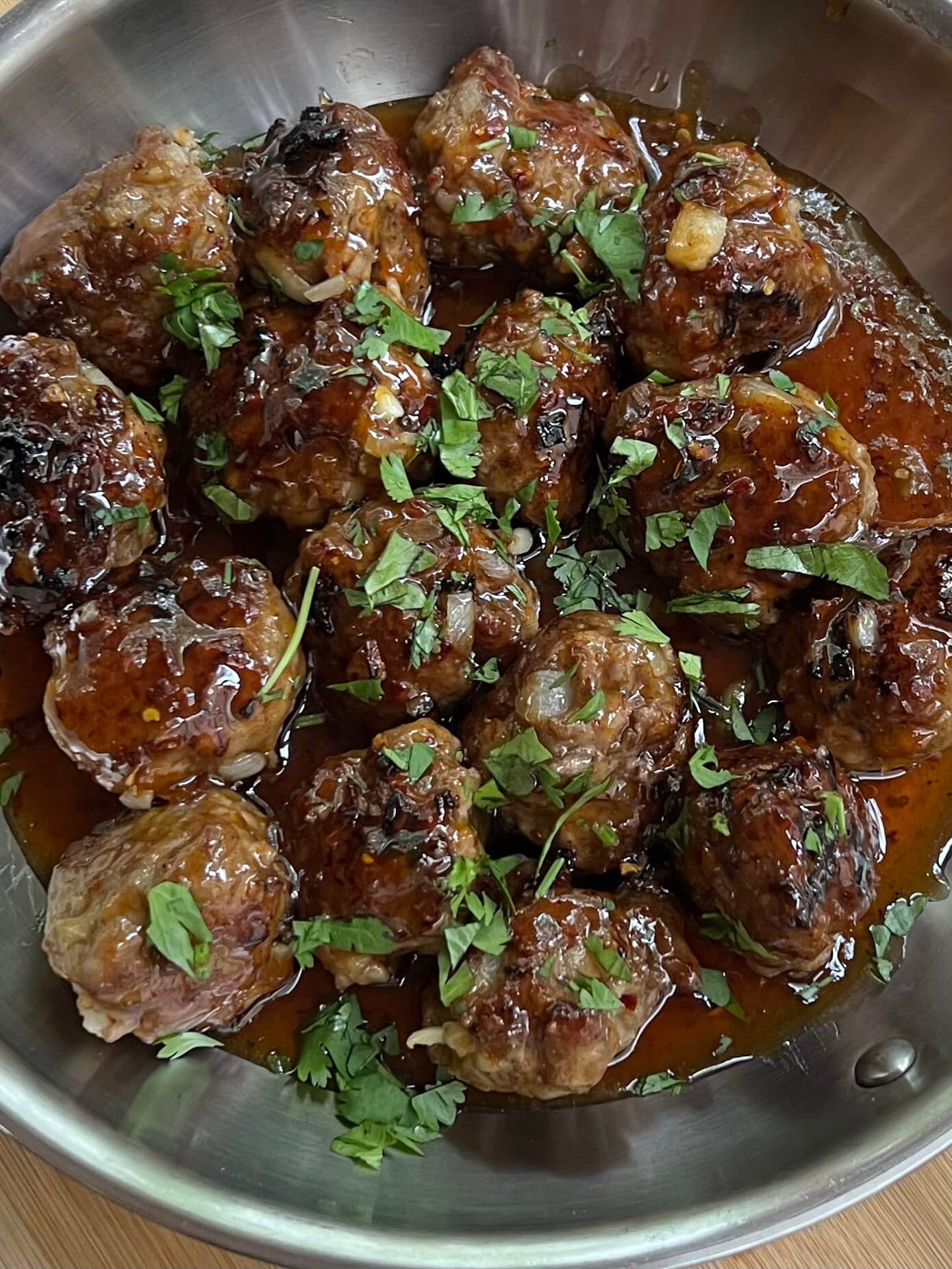 Serve the meatballs over rice and garnish with fresh chopped cilantro, if desired.