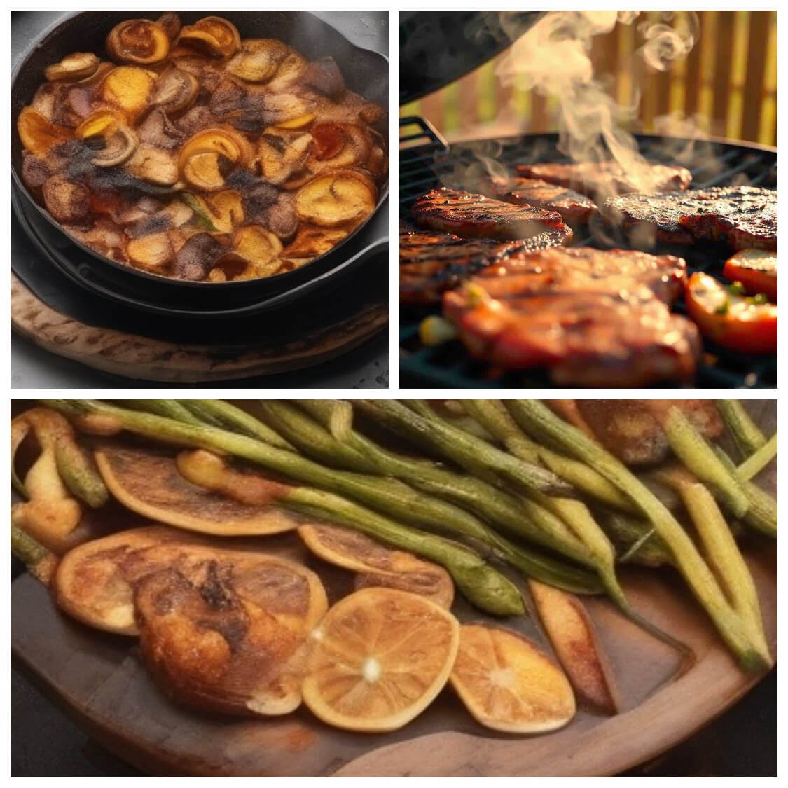 This includes the sugars and proteins in the food undergo what is referred to as the Maillard reaction and caramelization, leading to the development of complex flavors and a distinctive charred appearance.