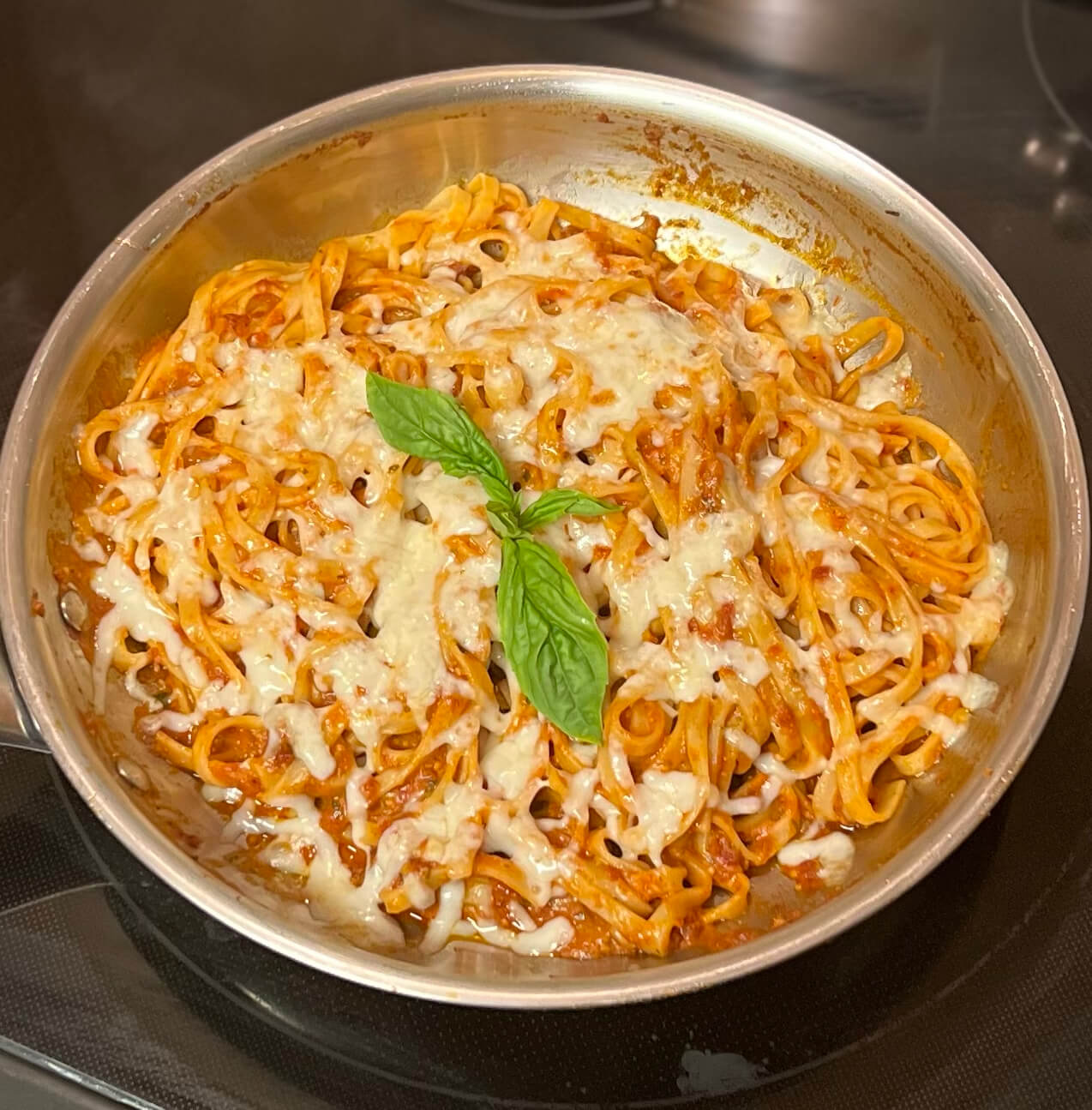Dive into the essence of Italian cuisine with our Linguine al Rosso Pesto with Mozzarella.